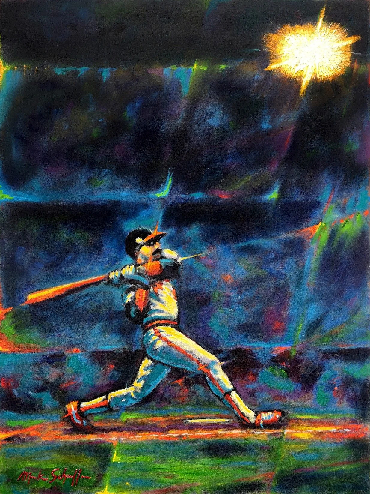 Reggie Jackson: Swing Away. (1984) Oil on Stretched Canvas, 36” x 48”